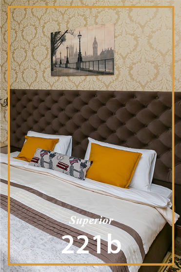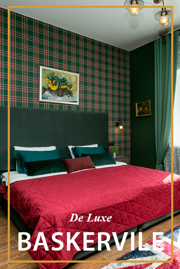 выполненные в английском стиле, площадью от 24 до 40 кв. метров. А так же три общих комнаты на 6 и 8 человек с большой гостиной. У каждого номера свой неповторимым декор и атмосфера, связанные с тем героем или детективной историей, в честь которой они названы. Номера оборудованны необходимой техникой, зоной отдыха, рабочим местом, уютной ванной комнатой с душем.